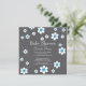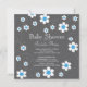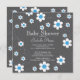 Na moda quadrado de chá de fraldas floral apenas para um chá de fraldas de bebê apresentando flores de margarida brancas e azuis destacadas em um fundo de cinza de tendências com um retorno correspondente. Nosso popular convite para chás de fraldas florais moderno é perfeito para um chá de fraldas de meninos. Visite o nosso compro para fazer a correspondência de agradecimentos, cartões de nota, adesivos e selos postais.