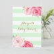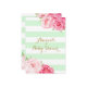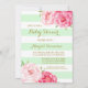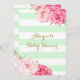 Convites personalizados para chuveiros de bebês com padrão de listras verdes e brancas de menta pastel clara, detalhes dourados e flores bonito cor-de-água rosa. Perfeito para primavera ou chá de fraldas de verão.