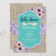 Convites Chá de fraldas de Flores de Aquarela Roxo-Teal