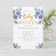 Convite para Chá de fraldas de Flores de Dourada Água Azul