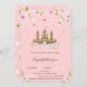 Dourado castelo brilhante, com estrelas e flores. Esses convites para chuveiros de bebês são facilmente personalizados para seu evento simplesmente adicionando seus detalhes.