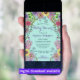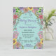 Este convite para o Chá de fraldas é uma combinação harmoniosa de elegância e vibração, destinada a convidar cordialmente convidados para comemorar a chegada. O fundo é um brinde suave, criando um lugar sereno para a vibrante borda florida que envolve as bordas. Uma variedade de flores em tons radiantes de roxo, rosa, amarelo e verde se entrelaçam graciosamente, exuando uma sensação de vida florescente e antecipação alegre. O texto no centro é claramente legível contra o fundo sereno teal que cria um efeito calmante. No geral, este convite captura lindamente a alegria e a antecipação de um chá de fraldas com suas cores vibrantes e design elegante. É uma combinação fantástica de estilo e função, que oferece todos os detalhes necessários, ao mesmo tempo que gera um convite visualmente bonito.