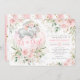 Bem-vindos ao seu doce amendoim com este bonito convite para chás de fraldas. Apresentando rosas cor-de-rosa escamosas femininas, verde botânico suave em verde e ouro, e um adorável elefante bebê dormindo em um balão de cor rosa flutuante. Clique no botão "personalizar mais" se quiser reorganizar e formatar o estilo e a posição do texto. Vem com uma faixa cor-de-rosa e dourada correspondente na parte de trás.