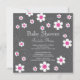 Na moda quadrado de chá de fraldas floral apenas para uma menina com flores brancas e cor-de-rosa destacadas em um fundo de cinza de tendências com um retorno correspondente. Nosso popular convite para chás de fraldas florais moderno é perfeito para um chá de meninas. Visite o nosso compro para fazer a correspondência de agradecimentos, cartões de nota, adesivos e selos postais.