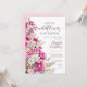 Design botânico, elegante e feminino para chá de fraldas feminino com flores silvestres de aquarela delicada, cor-de-rosa magenta brilhante, e cores brancas.