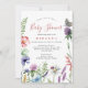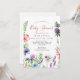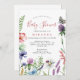Um convite bonito para o seu Chá de fraldas apresenta um quadro de flores silvestres de cor d'água. Personalize com todos os seus detalhes importantes, como Nome da Mãe para Ser, data, hora, local, RSVP e informações de registro.
