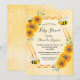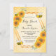 Elegante, chá de fraldas divertido, neutro em relação ao gênero. Fundo amarelo com um padrão de colmeia de ouro. Com uma falsa estrutura geométrica dourada. Amarelo, girassóis cor de laranja e abelhas-deslumbradas. Com o texto: Chá de fraldas e o nome da mamãe a ser gravada na frente com um moderno script de estilo escrito à mão. Letras negras. Traseira: padrão branco amarelo de mel.