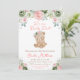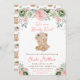 Convites Chá de fraldas de Flores Verde e Rosa do Urso