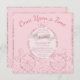 Este convite de chá de fraldas personalizado para bebês apresenta um tema de conto de fadas encantador em um fundo rosa. Uma imagem de uma carruagem de princesa reluzente rosa com uma tiara no topo é colocada na frente, com as informações de evento impressas. Um quadro brilhante cor-de-rosa correspondente borda o convite. A frase clássica do conto de fadas, "Uma vez por vez" é impressa acima da carruagem em uma letra elegante.