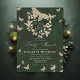 Uma coroa branca e cascata de folhagem exuberante, bem como um borrifle de borboletas espumantes com luzes de fada e poeira mágica, pregada com efeito ouro (é um efeito digital, não uma folha real ou uma reluzente!), decoram este primavera de verão o convite de chá de fraldas neutro de inverno com um tema de floresta encantada e um tema de borboleta, além de um fundo verde caçador. Um convite elegante e moderno para um chá de fraldas de conto de fadas. Perfeito para mães e pais que amam o cenário de conto de fadas, o tema da floresta de fadas ou do jardim de fadas, o tema da borboleta e o verde de caçador, e que querem uma celebração neutra em termos de gênero.