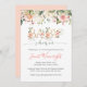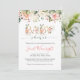 Convite de Chá de fraldas elegante com ouros decorados com rosas cor de água rosa e pêssego contrastados com folhas claras e esverdeadas.