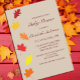O outono deixa chá de fraldas convite. Carvalho de outono e folhas de carvalho contra fundo castanho-claro-rústico