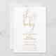 Este elegante convite de chá de fraldas de script em ouro pode ser personalizado com todas as suas informações especiais de celebração e fotos especiais no verso. Projetado por Thisnotme©