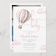 Este charmoso convite para chás de fraldas apresenta um balão e nuvens de ar quente cor-de-rosa, bem como uma tipografia elegante com script. Com o código QR do registro e a foto especial no verso. Projetado por Thisnotme©