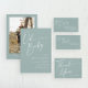 Script Moderno Sage Green PhotoShower Baby Invitation. Clique no botão personalizar para personalizar este design com seus detalhes.