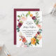 Convide convidados para o seu evento com este convite de chá de fraldas de outono botânico. Apresenta uma moldura de diamante de cor d'água de rosas, peões e outras flores cor-de-rosa, roxo, laranja e escamoteada, com folhas de eucalipto e acentos verdes. Este elegante convite floral de outono é perfeito para chás de fraldas de outono e chás de fraldas neutros de gênero.