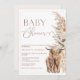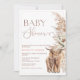 Highland Cow Calf Floral Frame Chá de fraldas Invitation Bohemian inspirou um convite para chá de fraldas com vaca e vitelo, um arranjo floral colorido com grama-pampas no lado direito do convite e uma imagem serif e caligráfica moderna em uma textura falsa de folha de ouro. Ideal para quem tem um templo de vaca e um chá de fraldas inspirado na boemia.