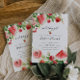Convite divertido e brilhante com morangos, cerejas, melancia, flores e verde.