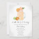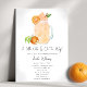 chá de fraldas de temas lisos de fruta com ilustração do smoothie laranja tocado com fatia laranja. Texto diz, "Um pouco de graça está a caminho"