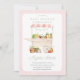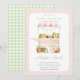Um belo convite de chá de fraldas temático para o mercado de fazendeiros com um carrinho e legumes bonitos.