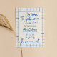 Se você está procurando por um elegante convite de chá de bebê único e fácil personalizável, isso é perfeito para você. Como podem ver, ele apresenta um roteiro manuscrito retrô de um ganso de bobo está quase lá em azul. E ganso puxado à mão. E o quadro de borda azul e os quadrados azuis. Tudo azul e sobre fundo creme. Muito fácil de personalizar e usar. Então pegue e faça seus convites muito comprometidos.