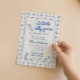 Se você está procurando por um elegante convite de chá de bebê único e fácil personalizável, isso é perfeito para você. Como podem ver, ele apresenta um roteiro manuscrito retrô de um ganso de bobo está quase lá em azul. E ganso puxado à mão. E o quadro de borda azul e os quadrados azuis. Tudo azul e sobre fundo creme. Muito fácil de personalizar e usar. Então pegue e faça seus convites muito comprometidos.