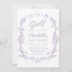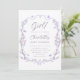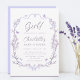 Este convite para chás de fraldas de meninas apresenta um quadro floral lavanda adorado com borboletas e fitas.