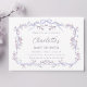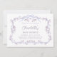 Este convite para chás de fraldas de meninas apresenta um quadro floral lavanda adorado com borboletas e fitas.