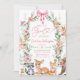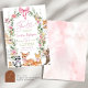 Convite para Chá de fraldas de Garota Animal da Floresta Verde, Convite para Chá de fraldas Floral Cor-de-Rosa, Convite para Arco de Coquetes Rosa