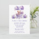 Espero que goste dessas nuvens de aquarela roxas com uma carruagem rolante com um pequeno Urso de Teddy giro sentado com flores por toda a parte. Os convites correspondentes e os suprimentos de chá de fraldas estão disponíveis neste conjunto de coleta. Excelente para o chá de fraldas de uma menina!