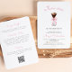 Este convite de chá de fraldas de tendência apresenta uma ilustração de aquarela de um martini espresso enfeitado com um arco de coquete rosa. Acima de tudo, as palavras "um tini um" aparecem em rosas escritas manuais casuais. O verso oferece espaço para fralda, livros para bebê e detalhes do registro, juntamente com um conveniente código QR que os convidados podem digitalizar para visitar o registro. Ideal para o chá de fraldas de uma garota.