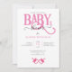 Convite de CHÁ DE FRALDAS rosa adaptável com tipografia PINK BABY e pequeno pacificador rosa