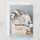 Chá de fraldas do Teddy Bear Girl Um convite ao chá de fraldas intitulado "We Can Beary Wait", com um ursinho de pelúcia e um balão azul para um bebê. Explore os itens de coordenação na coleção Tema do Chá de fraldas Urso de Teddy.