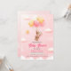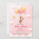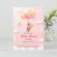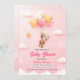 Este adorável convite para chás de fraldas apresenta um urso fofo segurando balões em forma de estrelas e círculos, flutuando num céu cor-de-rosa sonhador cheio de nuvens macios e estrelas cintilantes. O design caloroso e gentil evoca um senso de capricho e charme, perfeito para a celebração de uma menina.