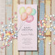 Balões de multicores com aquarela em fundo rosa pálido, este design é perfeito para convites para chás de meninas. CORRESPONDENTE a itens na nossa coleção.
