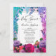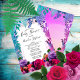 Flores brilhantes, arrojadas e coloridas e samambaias tropicais, design de Chá de fraldas floral de vassoura com quadro de sotaque em tom gradiente cor-de-rosa a roxo.
