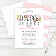 Convites Chá de fraldas de Garota Floral Rosa Elegante
