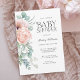 Celebre a chegada de uma doce menina com este belo convite de chá de fraldas feminino. Com um encantador charme de vassoura, este elegante design floral de aquarela tem rosas de cor rosa e pêssego macios e papoilas com adoráveis verdes de eucalipto à direita ao longo da fronteira esquerda. Uma fonte elegante mostra "Chá de fraldas" no estilo lindo do livro de histórias. Personalizado o modelo de texto com seus detalhes. Este convite está disponível como download digital impresso e sem papel.
