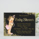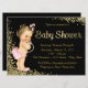 Convites Chá de fraldas de Garota Glitor Preto de Folha de