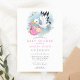 Convite para Chá de fraldas de aves modernas de cor d'água cor-de-rosa-estendido