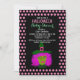 Este novo design é perfeito para um Chá de fraldas de Halloween Girl. É desenhado com uma bruxa bonita na frente de cada convite. Ela tem cabelos cor-de-rosa, um rosto verde e grandes olhos azuis e foi criada de trabalhos pessoais de arte. O plano de fundo da frente é bolinhas pretas e cor-de-rosa e o fundo é preto com listras cor-de-rosa. modelo fácil disponível para seguir.