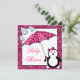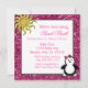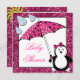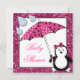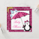 Pinguim super giro com gravata cor-de-bolinhas rosa e com um guarda-chuva de bolinhas e estrelas com chuva brilhante descendo, mas quando o sol brilhante amarelo brilha, o guarda-chuva se foi. Pobre! Perfeito para um chá de fraldas.
