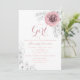 Simples, elegante, moderno convite de chá de fraldas cor-de-rosa esbranquiçado com elegante rosa de cor de água, faux prata floral e caligrafia moderna.