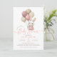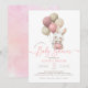 Convites Chá de fraldas de Garota Rosa com Balões de Coelho
