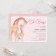 Um convite de chá de fraldas com um tema de safari girafa. A design apresenta uma ilustração feita a cores d'água pintada manualmente por uma mãe e uma girafa bebê. sobre um fundo cor-de-rosa pincelado. O cabeçalho "Oh Baby!" destaca-se no estilo de assinatura da tipografia da caligrafia.