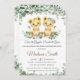 Personalize este convite de chá de fraldas chic com os detalhes do seu partido de forma fácil e rápida, basta pressionar o botão personalizá-lo para reorganizar e formatar o estilo e posicionamento do texto. Este convite cômico apresenta lindos leões de bebê de cor aquosa e uma folhagem verde. Todo o texto é editável! Itens correspondentes disponíveis no repositório! (c) O feliz Cat Studio.