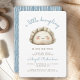 Este convite de chá de fraldas bonito apresenta uma ilustração de aquarela sorridente de kawaii dim sum dumpling. Acima de tudo, as palavras "um pouco dobrável" aparecem no roteiro de escrita manual azul. Personalize o texto com o nome da futura mãe em escrita azul e os detalhes em fontes de sans serif castanhas. A parte traseira da placa apresenta um padrão de listras desenhadas à mão em branco sobre um fundo azul. Ideal para o chá de fraldas de um menino.