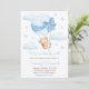 Este convite de chá de fraldas de aquarela giro e caprichoso apresenta um urso adorável num balão de ar quente azul com nuvens e estrelas. O texto combina o script manuscrito e as fontes sans serif para uma aparência na moda e moderna. Isto é perfeito para um chá de fraldas com tema de urso.