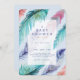 Nosso design apresenta nossas penas de aquarela pintadas à mão em rosa-pinto-penteado-penteado e roxo-poeirento. As penas são arranjadas de forma artística em torno dos elementos do convite ao chá de fraldas, concebidos de forma moderna e limpa. As penas com cor de água são adicionadas a um esplafo de tinta dourada falsa. Todas as ilustrações contidas no nosso convite de chá para o bebê bebebezinho de penas boêmicas são desenhadas à mão pela Moodthology.