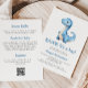 Este belo convite para o chá de fraldas apresenta um dinossauro azul de aquarela acima das palavras "RAWR! É um menino!" em letra azul de impressão. Personalize o texto com o nome da futura mãe em azul e os detalhes na fonte serif das cinzas de carvão. O verso oferece espaço para fralda, livros para bebê e detalhes do registro, juntamente com um conveniente código QR que os convidados podem digitalizar para visitar o registro. Ideal para o chá de fraldas de um menino.